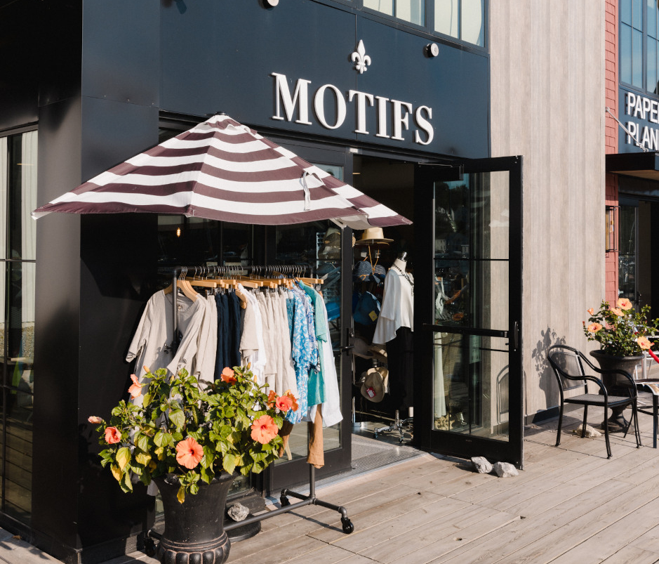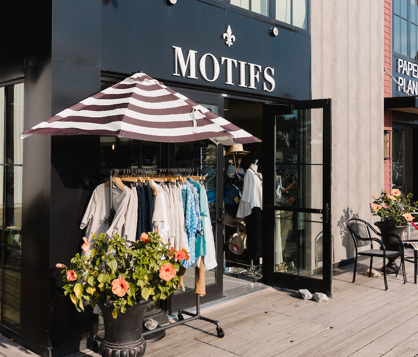 Now open on the Boardwalk! Motifs will be a specialty boutique featuring men's and women's clothing, home decor, and custom soft chandlery. Open Monday to Saturday, 11:30-5PM and Sunday 11AM-5PM.
